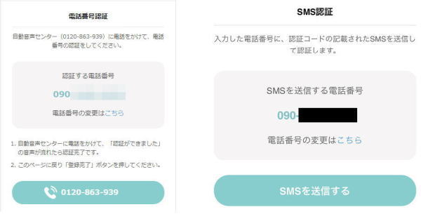 指定された番号に電話をかけることによって認証する方法とSMSによる認証があります。電話をかける場合でも、オペレーターが出てくるなどということはありません。電話番号を確認しましたと自動音声で流れるだけなので、意外とあっけなく完了します。