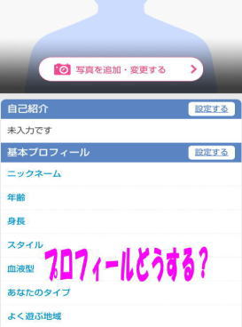 少なくとも、プロフィール設定の記入項目は全て埋めることです。